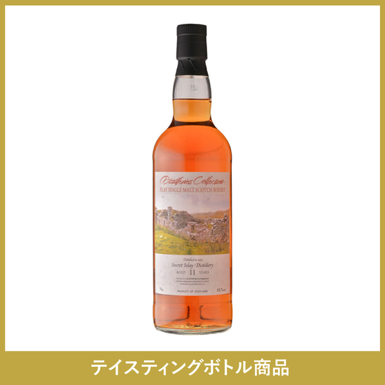 シークレットアイラ2013年蒸留・11年熟成、1stシェリーバット使用のシングルカスク。蒸留所は非公開ながら、樽由来の濃厚な甘みとスモーキーなピート香が調和する力強い味わい。ラベルにはアイラ島の丘にある遺跡ソラムが描かれた特別な一本です。