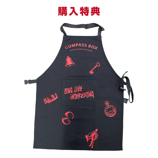 今回「ウイスキペディア」限定の特典として、コンパスボックス オリジナルエプロンをお付けしてお届けいたします。