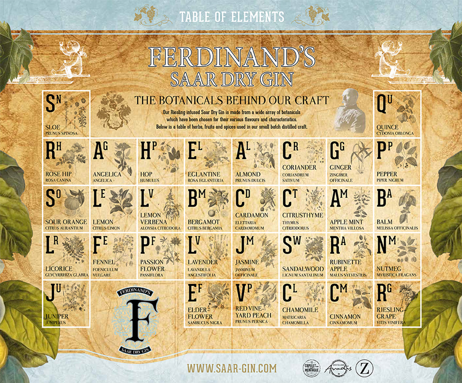 フルーツブランデーやリキュール、ワイン樽で熟成させたウイスキーなども生産していますが現在の主力商品はフェルディナンズジンです。