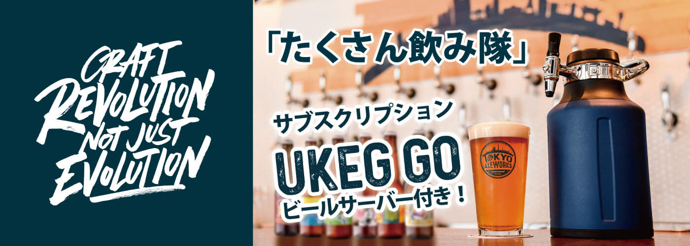 そして、今回一番のビックサプライズの会員特典として、ご自宅でも新鮮で美味しいクラフトビールを楽しんで頂くために、今話題の最新のビアサーバーを「2リットル半年コース」、「2リットル年間コース」には「UKEG GO 64」、「4リットル半年コース」と「4リットル年間コース」には「UKEG GO 128」を初回お届けするサブスクリプションサービスをご提供します。