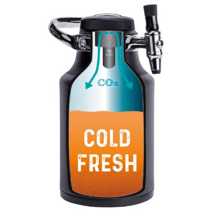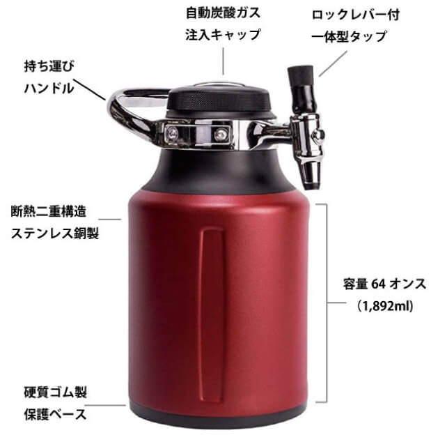 「UKEG GO」は、お店で使用されているビールサーバーの構造と同様の炭酸注入(容器内に炭酸ガスを添加する仕組み)により、ビールの酸化やガスが抜けてしまうことなく、美味しいビールを楽しむことができるアウトドア用ビアサーバーです。耐久性のある二重構造の真空断熱銅で造られており、長時間冷たい温度を保つことができ、家やアウトドア、パーティなどのシーンでも鮮度な生のクラフトビールを楽しむことができます