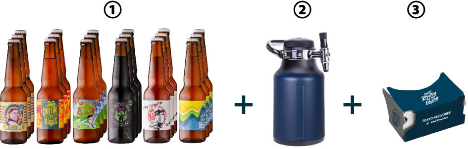 ① 毎月定期日 / 東京エールワークス クラフトビール1種類 500mlボトル × 3本(合計1,500ml)× 12カ月