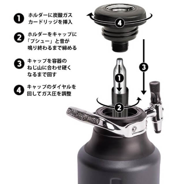 ② 炭酸ガスカードリッジを安全で簡単に装着